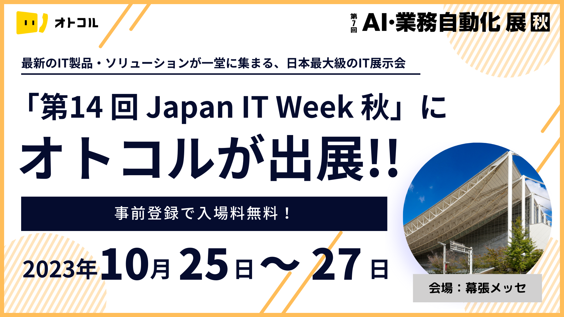 【電話発信業務を自動化/オトコル】10月25日~27日開催の「第14 回 Japan IT Week 秋」に出展