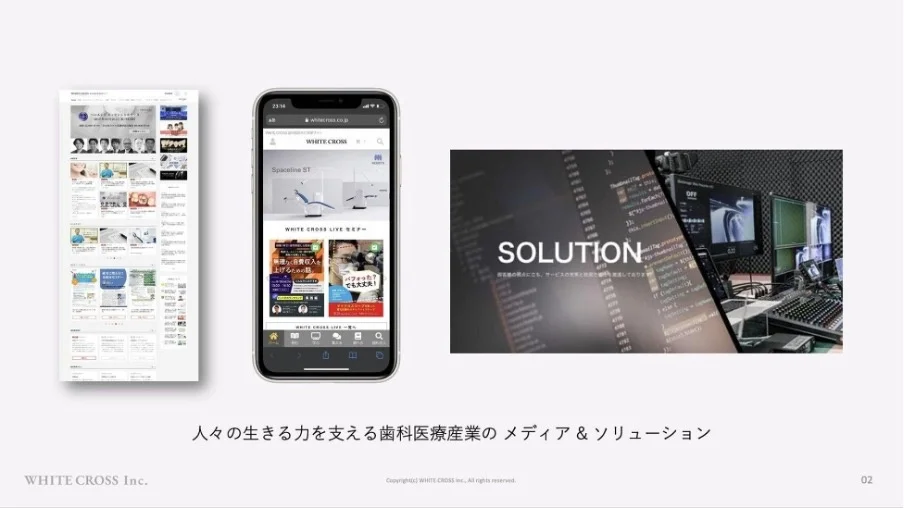 「歯科医療の社会的価値を高める。」をパーパスとし、歯科医療専門職に向けたメディアプラットフォームを運営しているヘルステックカンパニーです。