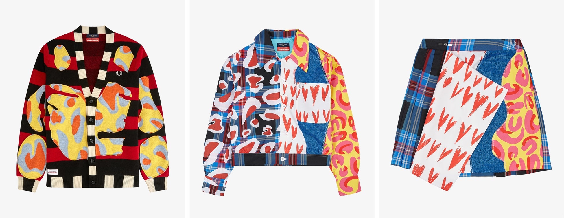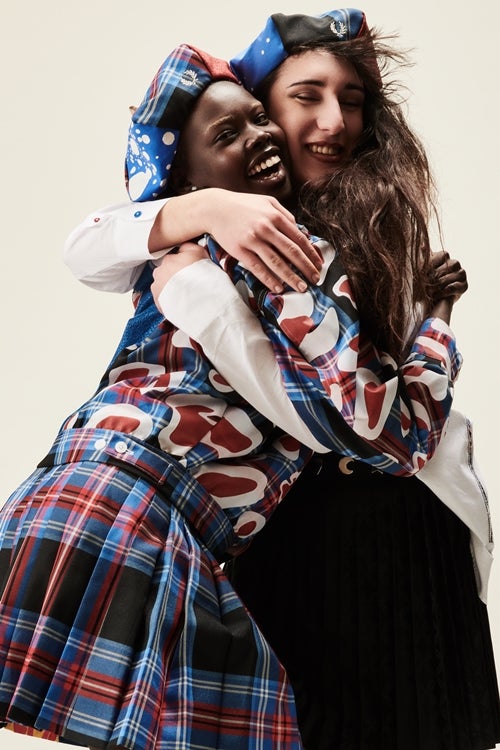 両ブランドが共有するクラシカルなタータンのストーリーを、アバンギャルドなDIYでアップデートしたフレッドペリーシャツ、タータンチェックが覗く縦長のスリットやコレクションを彩る4色のボタンを配したオーバイサイズシャツ、ブラック×レッドの大胆なストライプのラムウールカーディガン、タータンをベースにダイナミックな柄やグラフィックをパッチワークしたクロップド丈のジャケットやキルトスカートなど、9種のアイテムがラインナップします。