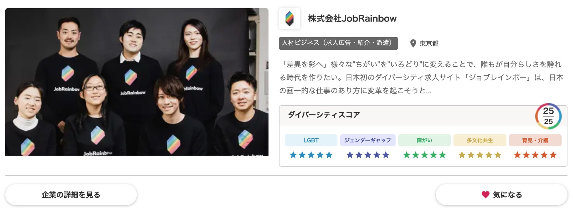 ジョブレインボーを使って、ダイバーシティ&インクルージョン推進に力を入れる「ダイバーシティ企業」に出会ってみてください。