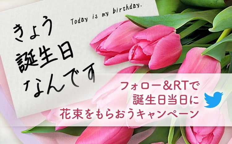 「きょう誕生日なんです」 ツイッターをフォロー&リツイートで誕生日「当日」に花束をお届け!きょう誕生日のみなさんを花キューピットがお祝いします。
