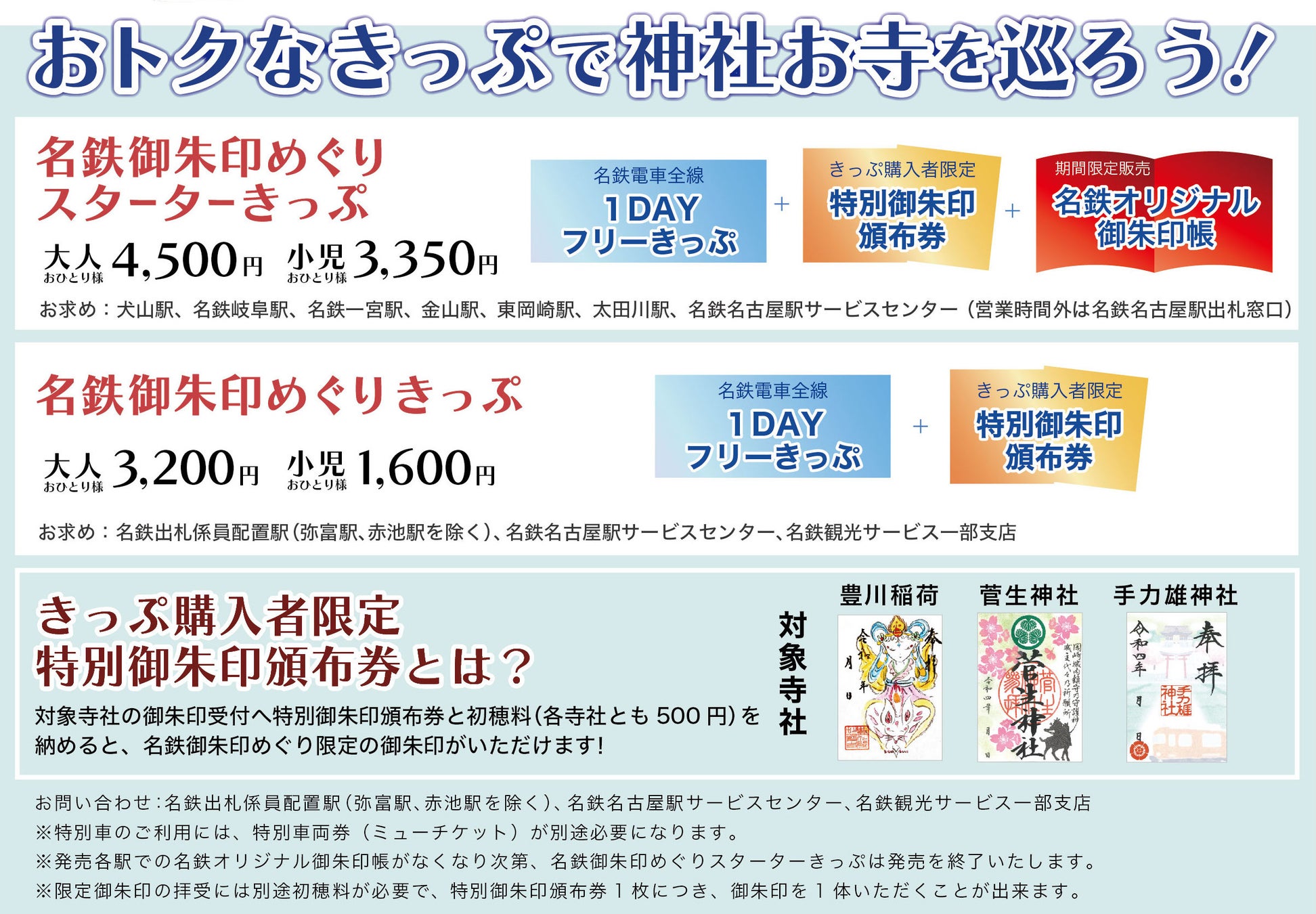 期間中、名鉄沿線の寺社めぐりに便利でおトクな、企画乗車券を2種類発売します。