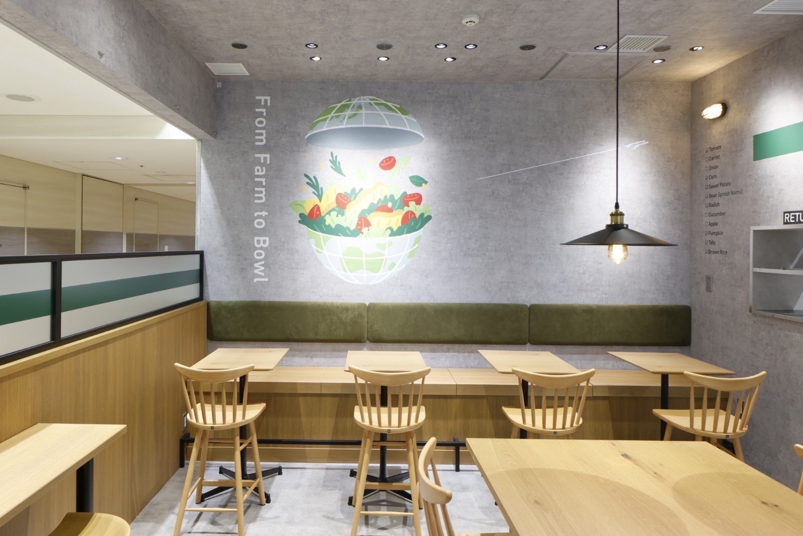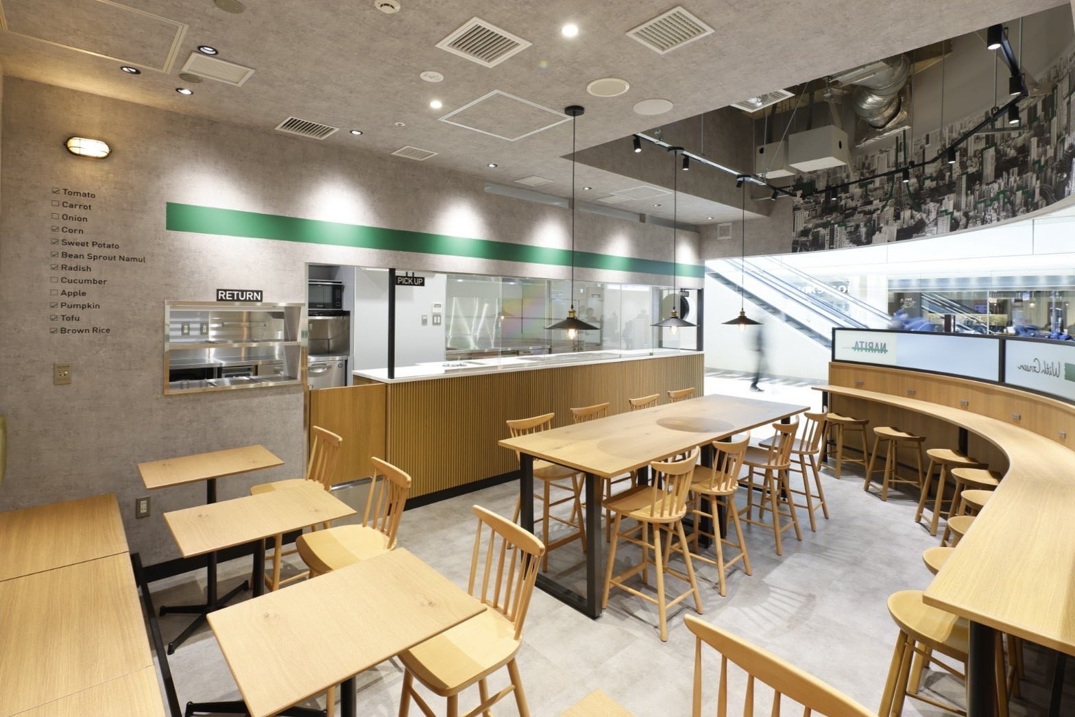 空港を利用される国内外のお客様に、搭乗前の食事として、日本の食材のおいしさがつまった“主食”になるサラダを提供します。また、空港で勤務されている方々にも、新たな食の選択肢としてご利用いただけることを期待しています。26席あるイートインスペースでゆっくり過ごしたり、予定に合わせてテイクアウトしたり、さまざまなシーンでご利用いただけます。
