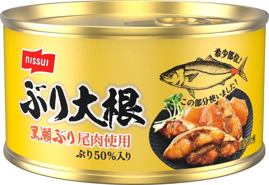 ニッスイ、「黒瀬ぶり」の尾肉を有効活用した缶詰「ぶり大根 黒瀬ぶり尾肉使用」を新発売