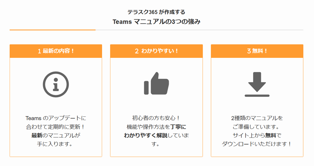 テラスク365が作成するTeamsマニュアルの強みは以下の3つです!