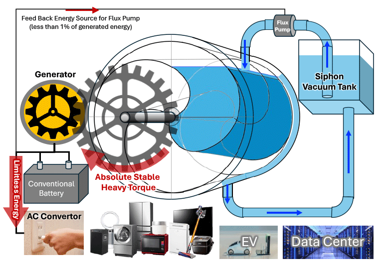 仮に、重力リアクターの直径70cmのコア・タービンが、想定のトルク・電力が出せなかったとしても、一般水道水レベルの水の水圧と流量があれば、落下落差の位置エネルギーに関係なく、重力の特性上、その水の重量に応じた安定した発電機を回せる力の安定した持続力を発生できる事は現実の自然科学として成り立っており、トラブルが起きても大きな損失や損害が出る可能性すらも無い。即ち発電能力を否定できる科学理論などは存在しないし、それを科学的権威の名を借りた難癖で、重力リアクターの製品化開発を妨害する事は、現在のエネルギー危機が顕在化している状況を知っていながら公然とする事は、戦争を企むテロか反社会勢力に加担している様にしか見えない様相を呈している。