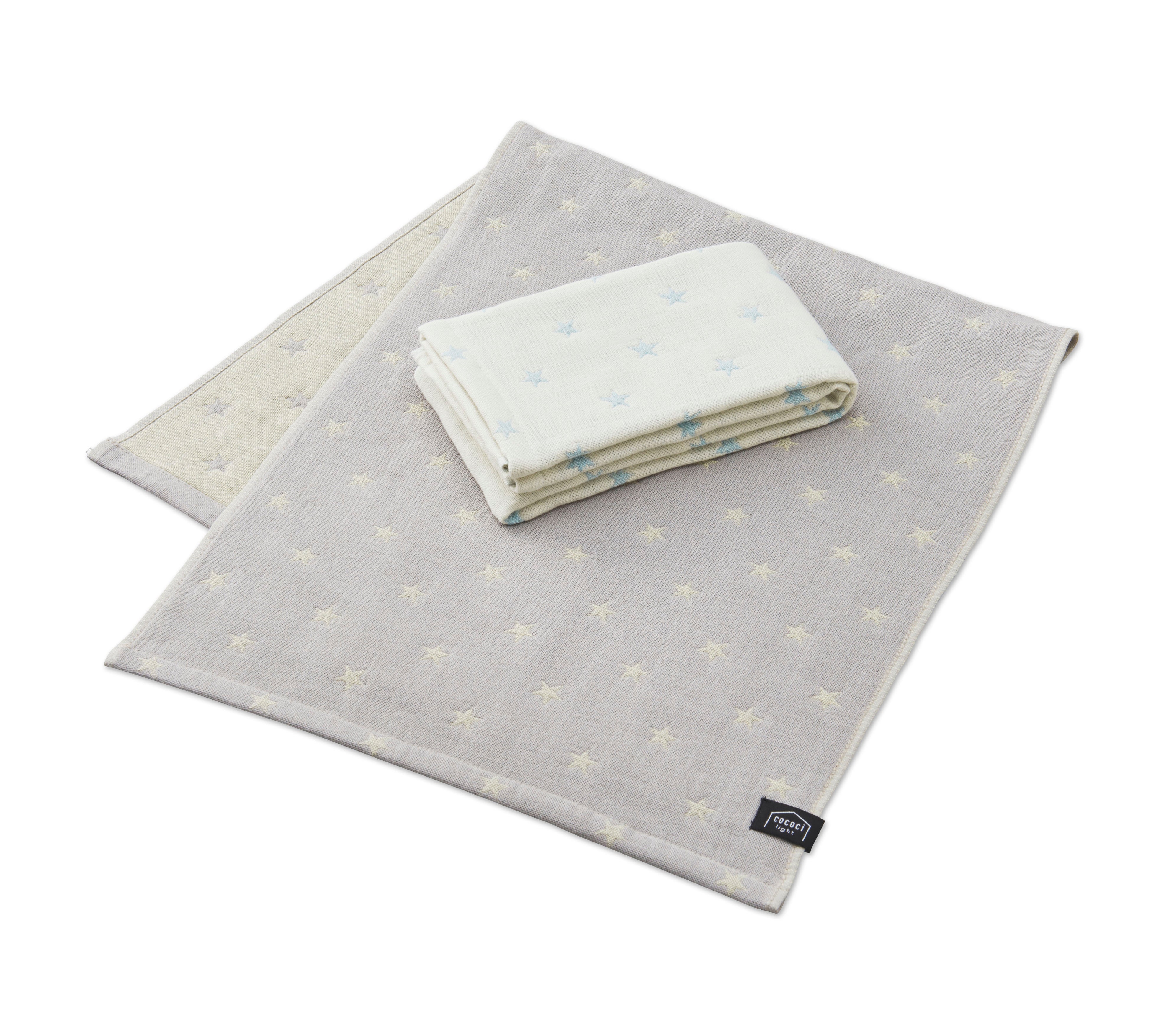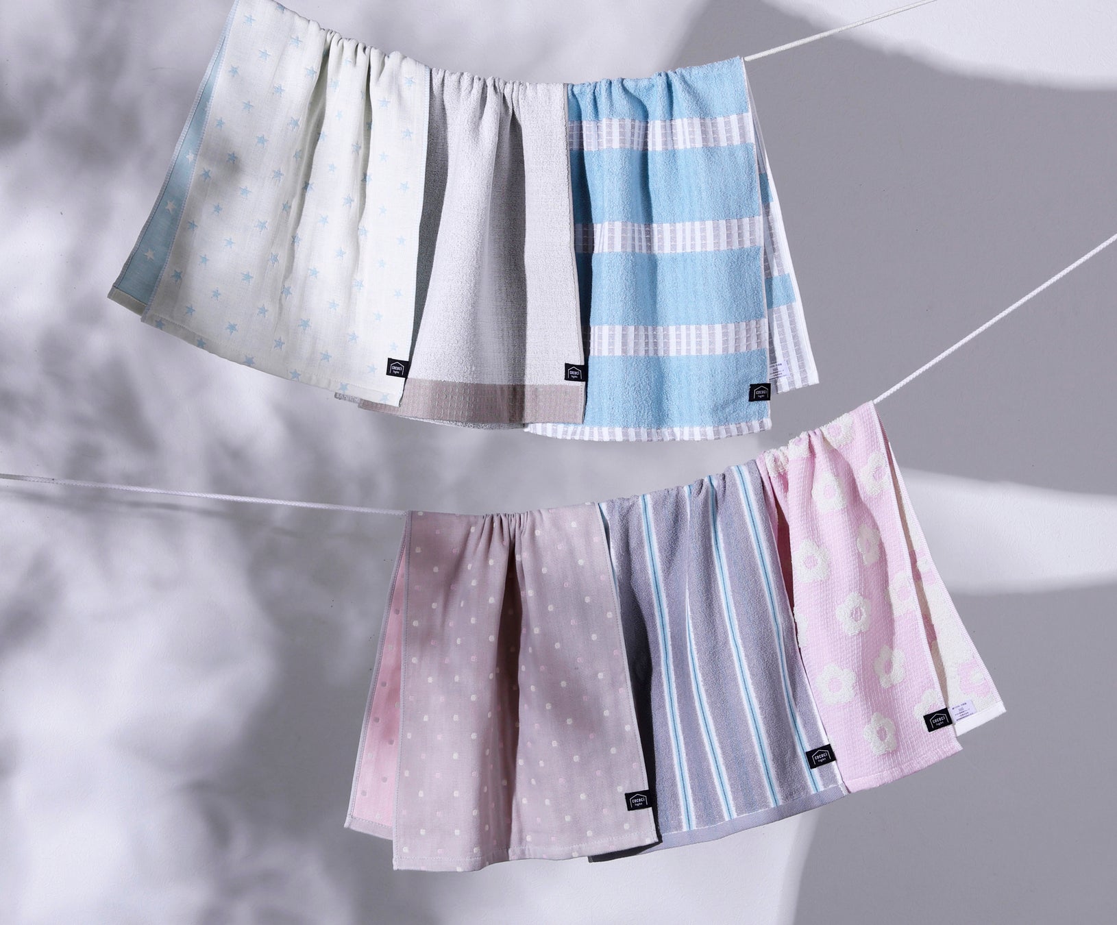 昨今、大きくて、干しにくく、かさ張るという理由からバスタオルの代わりにフェイスタオルを使うという方が増えており、また、従来主流だったボリュームのある厚手タイプのタオルよりも、絞りやすく、乾きやすい、扱いやすい薄手のタオルを求める声も多く聞かれるようになりました。そこで、薄手でコンパクト、洗濯がしやすく乾きが早いガーゼ素材をメインした使用したのが『cococi light(ココチ ライト)』です。ガーゼは粗めに平織りした後、晒してソフトな風合いに仕上げた生地のことで古くから医療品や肌着、手ぬぐいなどに使われてきました。凹凸がなくさらりとした風合いで肌への刺激が少なく、吸水性、通気性に優れ、気軽に洗えて、乾きやすいのが特徴です。『cococi light(ココチ ライト)』は3重ガーゼ、6重ガーゼの他にガーゼとパイル生地、ガーゼとワッフル生地の組み合わせなど、様々なガーゼの風合いや使い心地をお選びいただくことができます。デザインはストライプやボーダーの他に、フラワー柄、星柄などお好みに合わせお選びいただきます。また、汗対策や首もとの日焼け防止、冷房対策にもなるガーゼマフラーも展開いたします。尚、すべての商品にタオル美術館グループ独自の製法から生まれたソフトな風合い、優れた吸水性、毛羽の発生を格段に抑えた綿糸フルフィーコットンを使用しています。