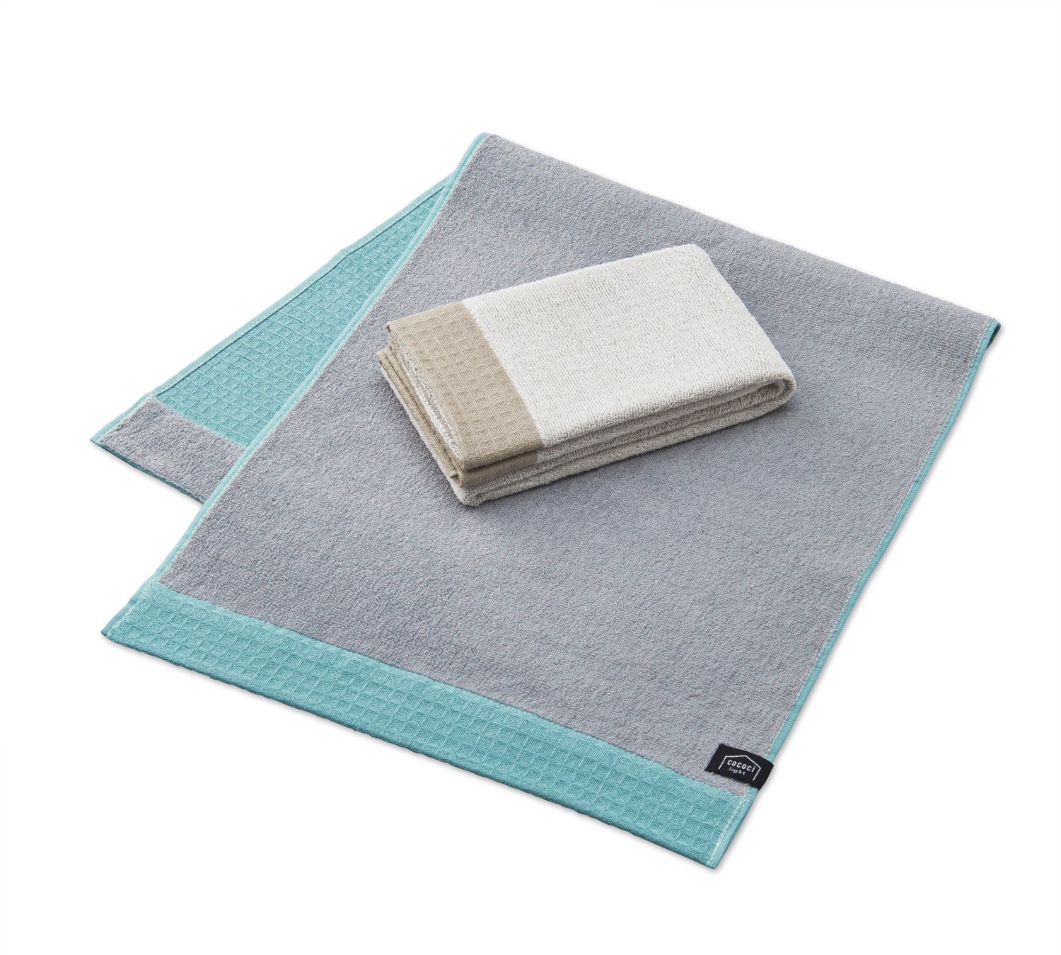 表面はパイル、裏面にはワッフル織のガーゼを使用しました。フカフカとしたパイルと凹凸の弾力感がふっくらと心地よいワッフルガーゼの異なる肌触りが楽しめ、リバーシブルでお使いいただけます。吸水性・通気性にも優れています。表糸と裏糸の色が織りなすシャンブレーのようなニュアンスカラーがおしゃれ。