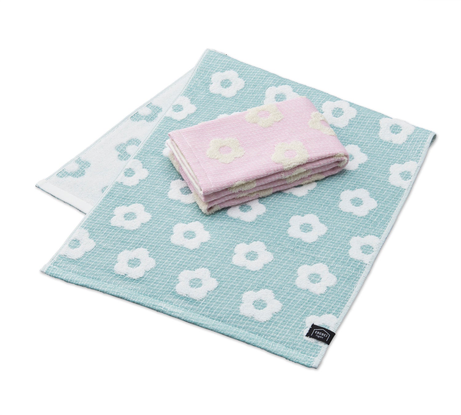 ざっくりと織り上げたガーゼ生地とふんわりとしたパイルの異なる2つの肌触りが楽しめるやわらかなタオルです。ポピーの柄が可愛いらしいデザイン。
