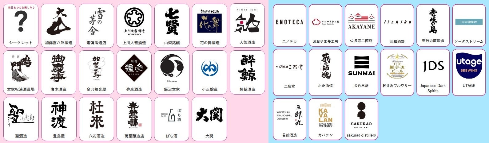 日本酒だけでなく、ワイン、ビール、ジン、ウィスキーなどもすべて“SAKE”とし、“SAKE”の魅力を広め、新しい“SAKE”の楽しみ方を発見していただくことを目的に、「上川大雪酒造」や「SAKURAO」、「おおやま夢工房」など34社をラインナップしました。さまざまな種類の“SAKE”を150種以上取り揃え、参加者はブースを自由に廻って試飲(※)することができ、試飲して気に入った“SAKE”は、当イベント参加者限定のネットショッピングで購入いただけます。また、会場内ではジャパニーズウィスキーを数量限定で販売するほか、蔵元ノベルティグッズが当たる抽選会などのコンテンツも用意しています。