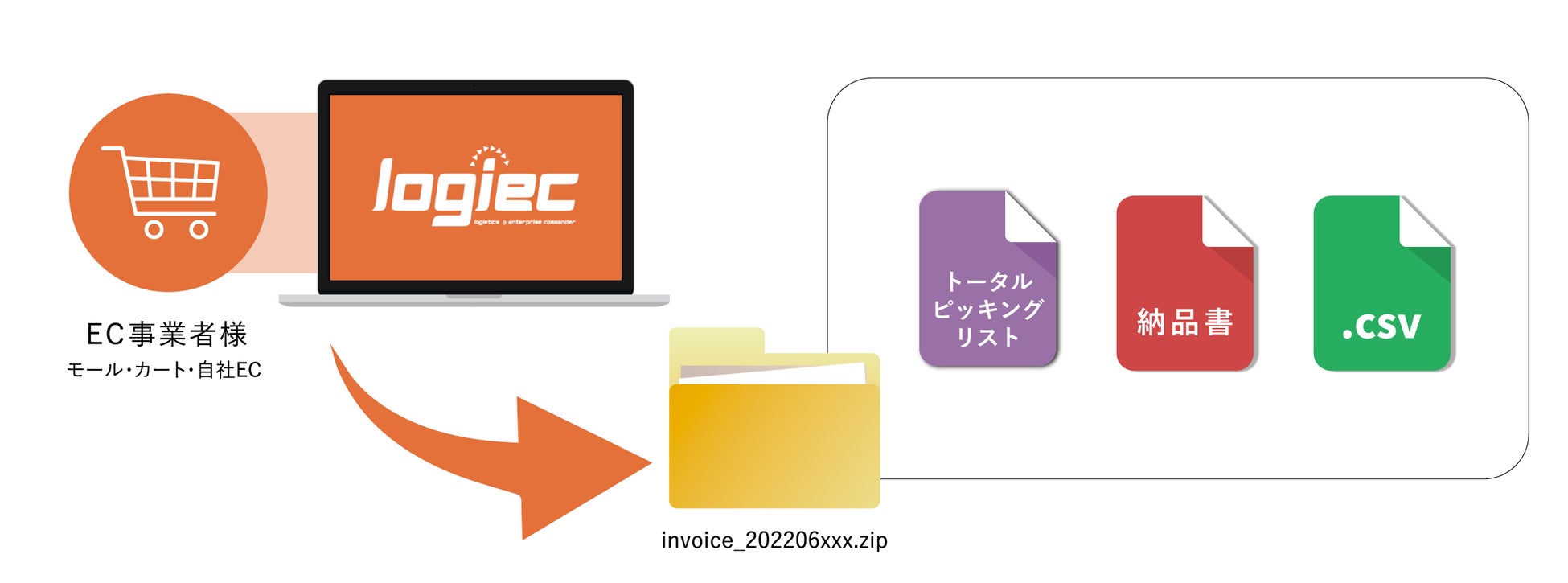 『はぴロジ帳票機能』の搭載で、出荷用帳票(PDF)/納品書(PDF)/送状CSVの出力が可能となり「logiec」のみで手軽に自社完結型の出荷作業ができます。「サンプルだけ自社出荷したい」といった課題をお持ちのEC事業者様や、すでに自社出荷をしている中で、出荷作業の効率アップや出荷ミスを減らしたい方にも適した機能です。