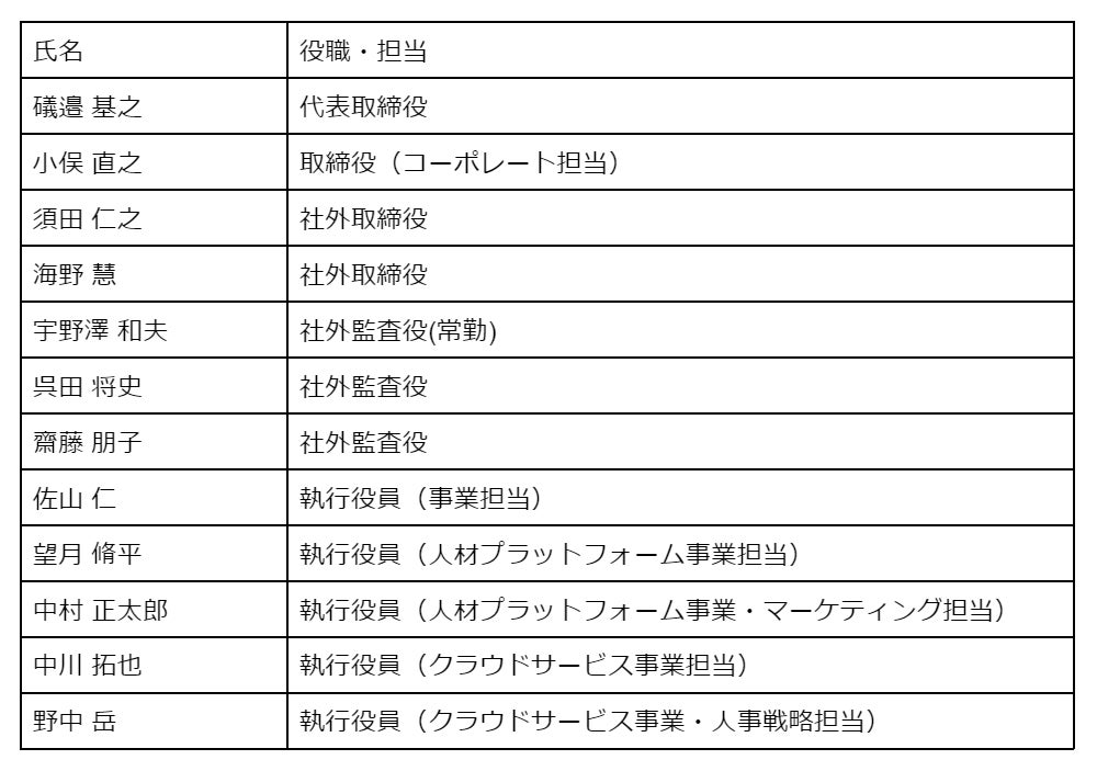 こうした背景から、これまで人材プラットフォーム事業、クラウドサービス事業を牽引してきた望月脩平、中村正太郎、野中岳の3名を新たに執行役員に選任しました。