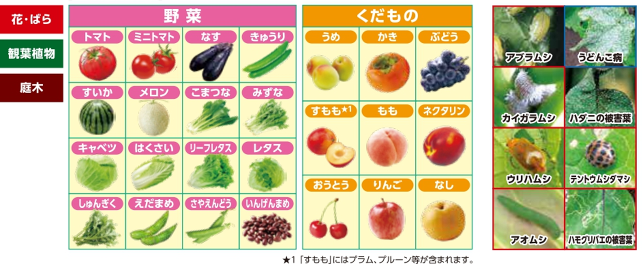 ▼主な適用作物と、対象害虫
