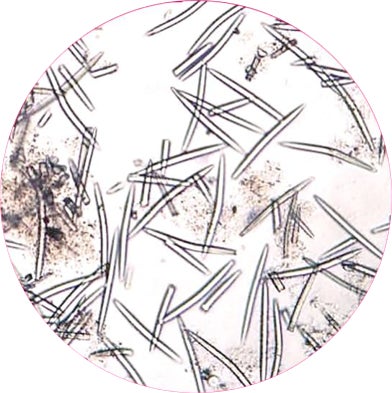 シリカなどのミネラル成分からできた海綿(かいめん)を微細に加工して、美容針*4 として配合しました。この美容針は、毛髪の 1/10 ほどの太さで、配合量が多すぎるとチクチクとした刺激感が強まり、少なすぎると効果を感じにくくなるため、適度な刺激感になるように商品 1 本 20gあたり約 60 万本の配合量としました。また、不純物が多い美容針原料を配合すると、水分と油分を混ぜる乳化に悪影響を及ぼし品質低下を招くおそれがあるため、パーフェクトニードル プレミアムでは原料を厳選し、さらに不純物を取り除く工程を加えるなど、成分の質と製造方法にもこだわりました。