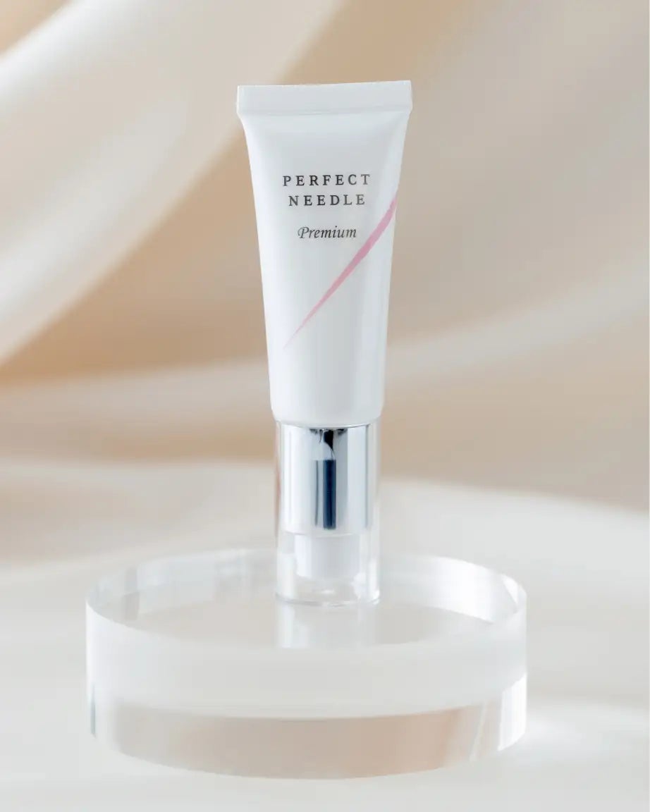 パーフェクトニードル プレミアムは、「マイクロニードルを塗る」という新感覚のエイジングケア*6 美容液です。「美容医療より身近で手軽に毎日使いやすく、パッチタイプのように使いたい部位を限定せず全顔のお手入れに取り入れて頂きたい」と考えてつくられた商品で、塗った瞬間にチクチクとした刺激感を与える美容クリームとして、多くのお客様にご愛用頂いております。お客様の素肌の状態や痛みの感じ方は個人差がありますが、マイクロニードルの刺激感を使い方によってコントロールできるのも、当商品の魅力の一つです。