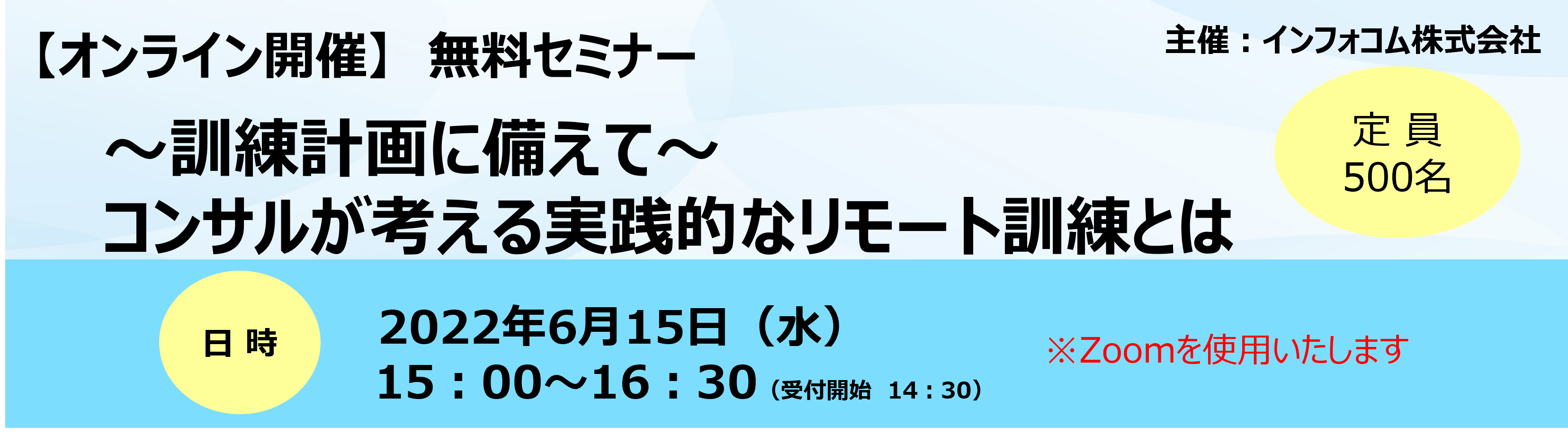 【6月15日(水) 法人向けオンラインセミナー】~訓練計画に備えて~コンサルが考える実践的なリモート訓練とは
