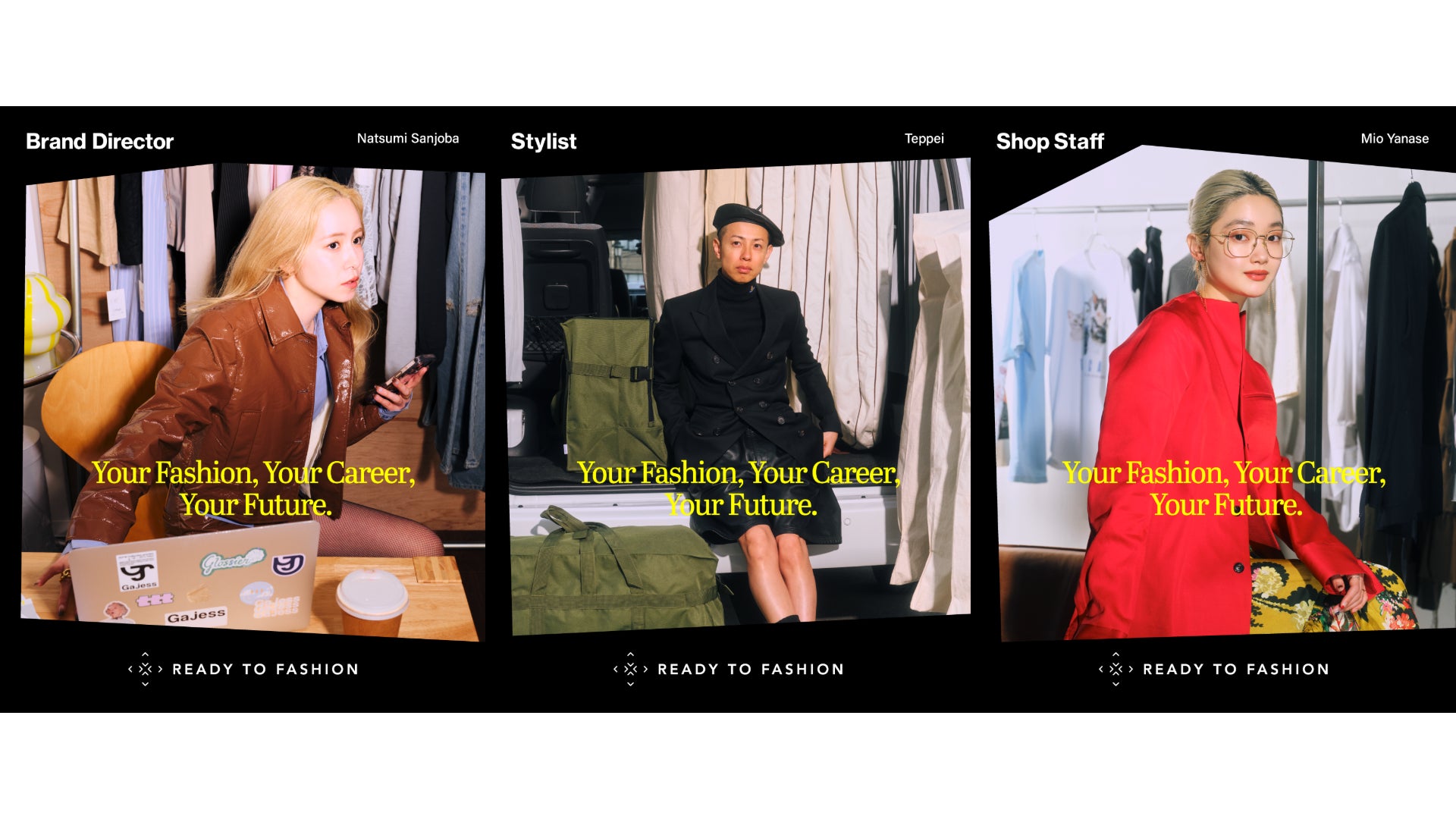 ファッション業界に特化した求人プラットフォーム「READY TO FASHION」、「TEPPEI」「三條場夏海」「柳瀬美央」をメインビジュアルに起用