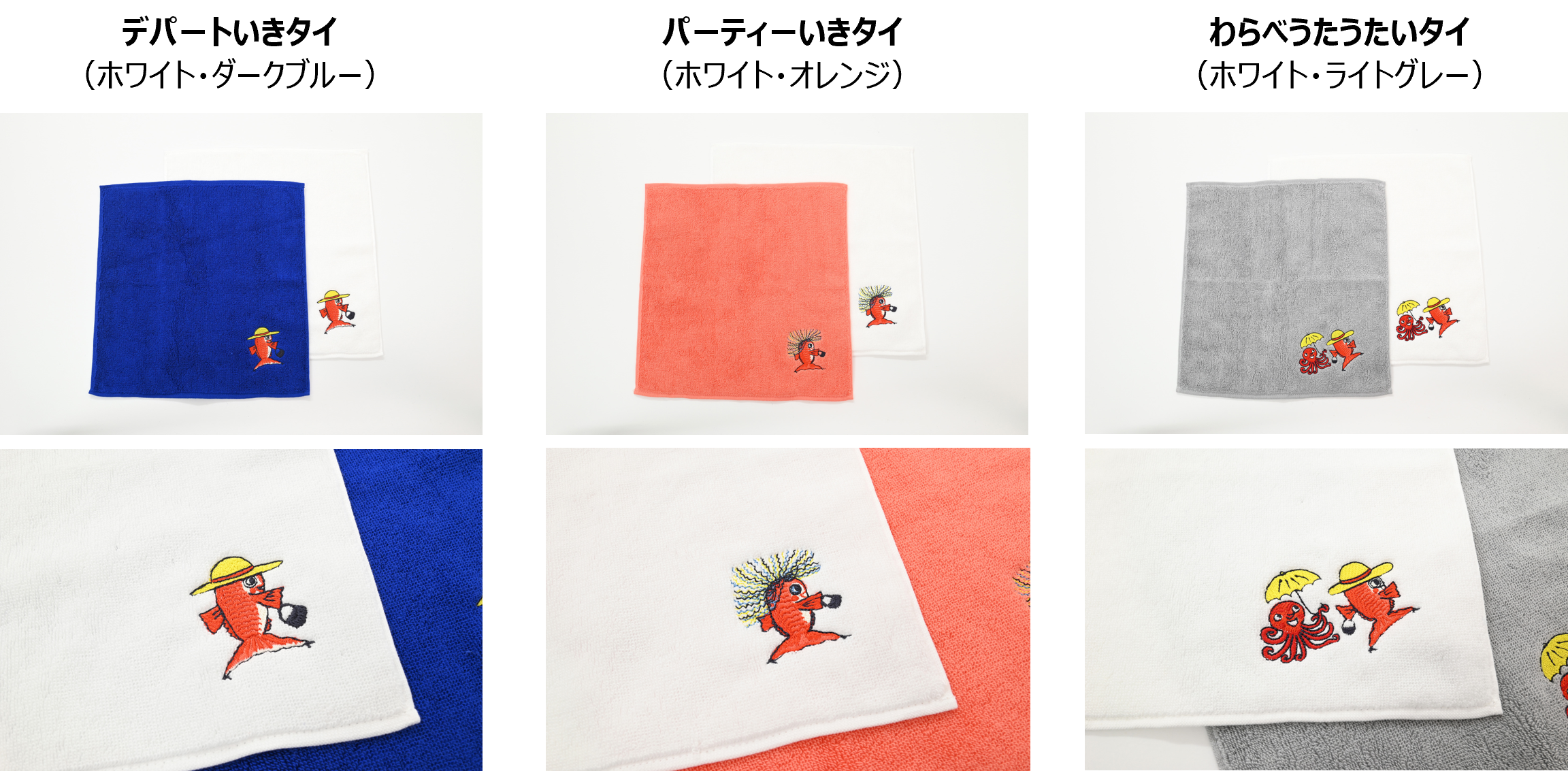 - せとうちたいこさんタオルハンカチ(各770円 税込)