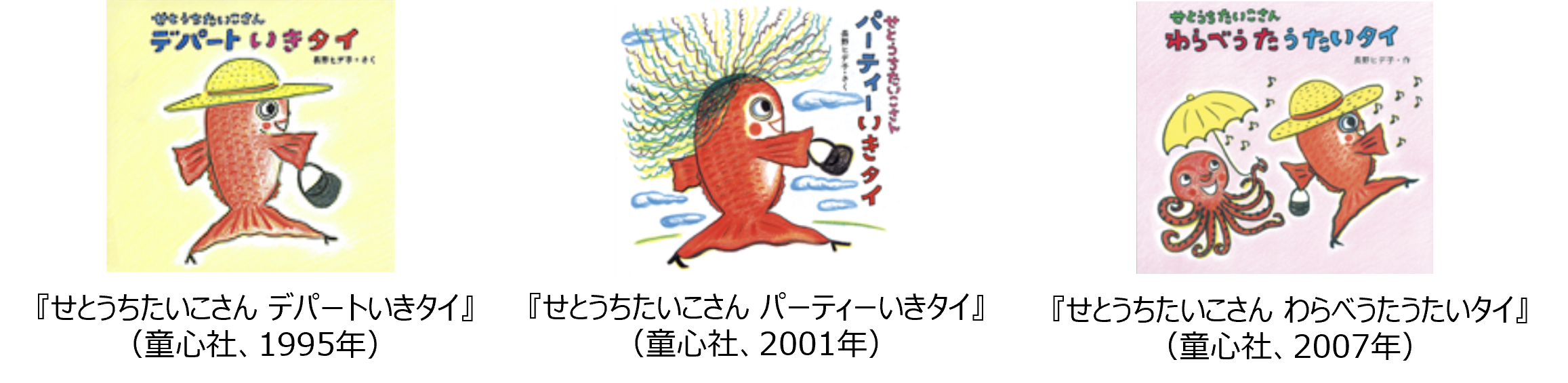 今治市出身の絵本作家長野ヒデ子さんの人気絵本「せとうちたいこさんシリーズ」(童心社)が今治タオルハンカチになリました。『せとうちたいこさん デパートいきタイ』(童心社、1995年)、『せとうちたいこさん パーティーいきタイ』(童心社、2001年)、『せとうちたいこさん わらべうたうたいタイ』(童心社、2007年)の3作品それぞれの愛らしい「せとうちたいこさん」を色鮮やかな刺繍で表現しました。ぜひ今治タオルならではの肌触りとともにお楽しみください。