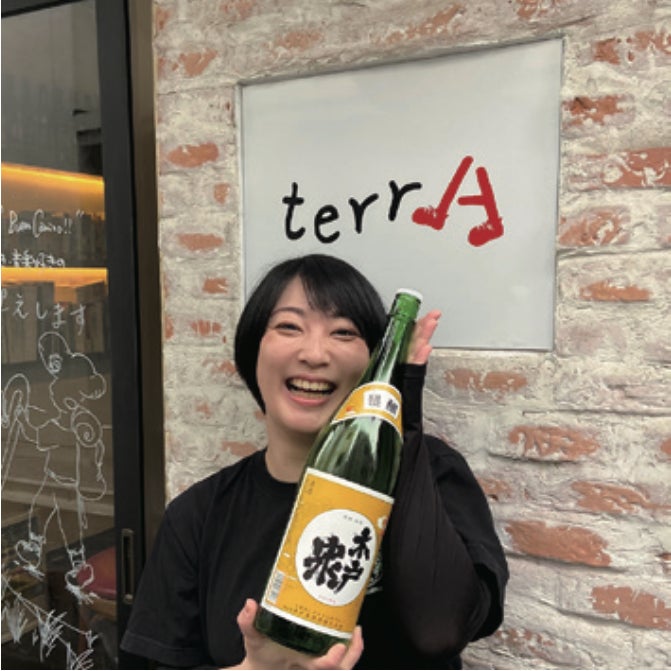 東京の下町で酒を愛する家庭環境で育つ。武蔵野音楽大学を卒業後、中学・高校の音楽科教諭として勤務。結婚を機に未経験である飲食の世界に飛び込み2019年より神保町で日本酒バル「terrA」(てら)を夫婦で営む。2021年に日本ソムリエ協会が認定するSAKE DIPROMAを取得。現在、夫の出身地である千葉県の日本酒を中心に品揃えをし、お客様と語り合う日々を送る。