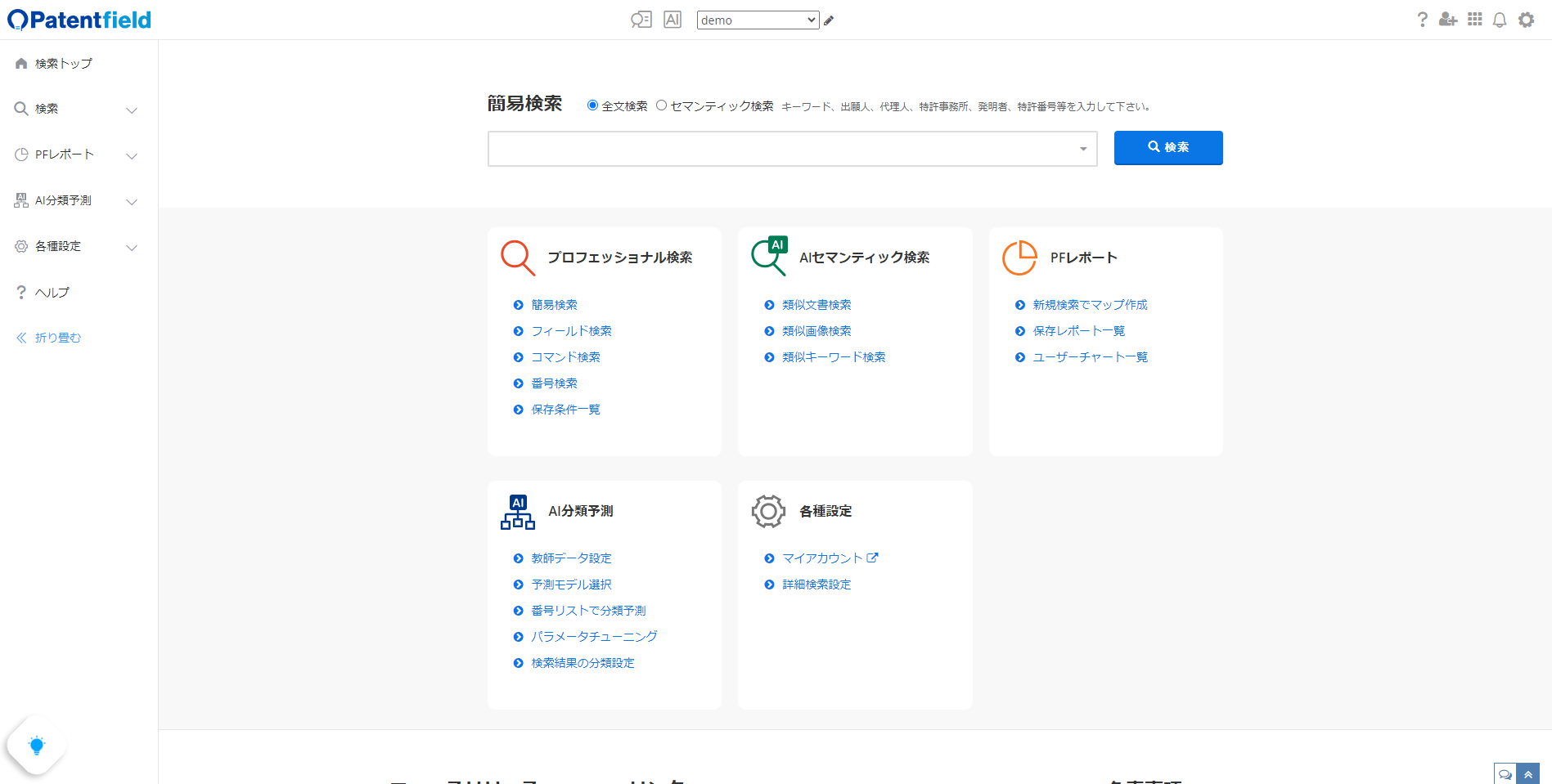 ・AI特許総合検索・分析プラットフォーム Patentfield