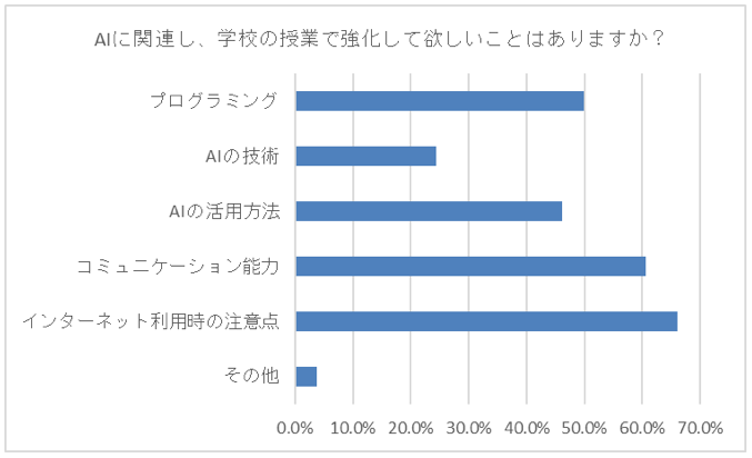 AIに関連し、学校の授業で強化して欲しいことはありますか?