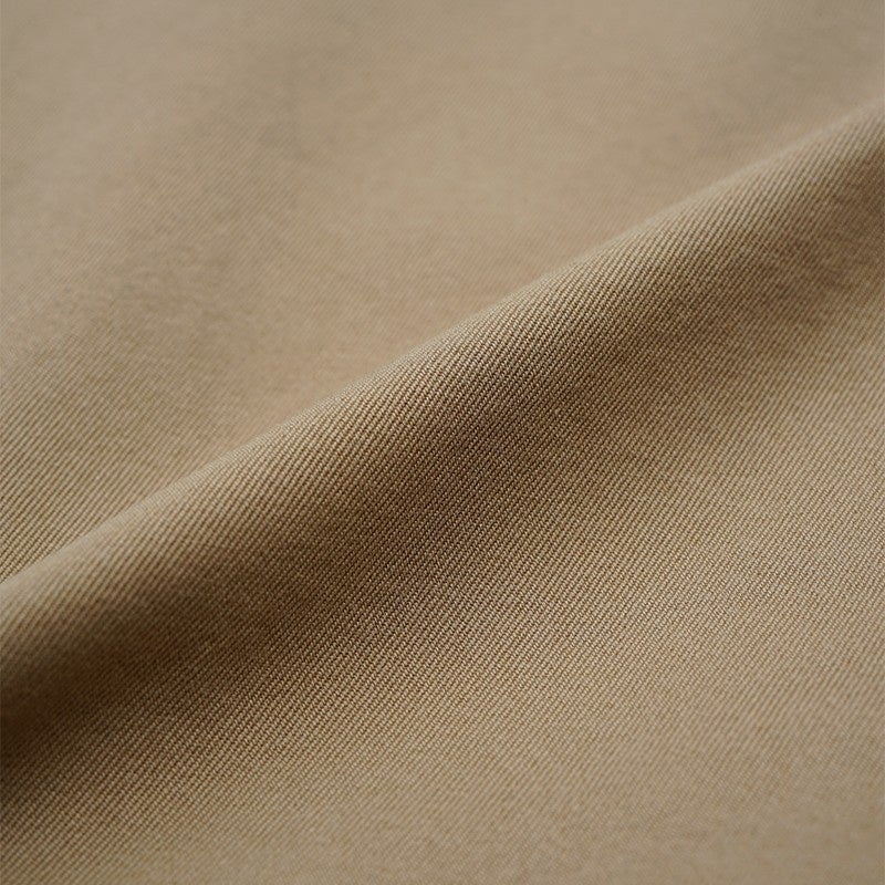 経糸にエジプト綿 GIZA 100/2/2、横糸にスーピマ綿 60/2 を使用した先染め高密度ギャバジンに、ニドムバイオ加工を施すことで、膨らみのあるソフトな風合いを実現しました。