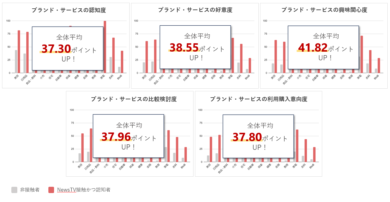 NewsTV Networkでの広告接触かつ認知者のブランド指標が大幅に向上