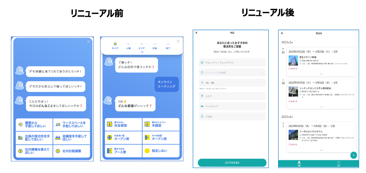 「はたらく誰もが主人公」をミッションとして掲げ、「はたらく時間から雑務をなくす」の中で、1つ1つの項目をチャット形式で話しながら聞いていくあり方よりも、数クリックで予約までつながるあり方の方がユーザー満足度を高めることがわかりましたので、この度、数クリックで予約完了ができるようにUI改善を行いました。