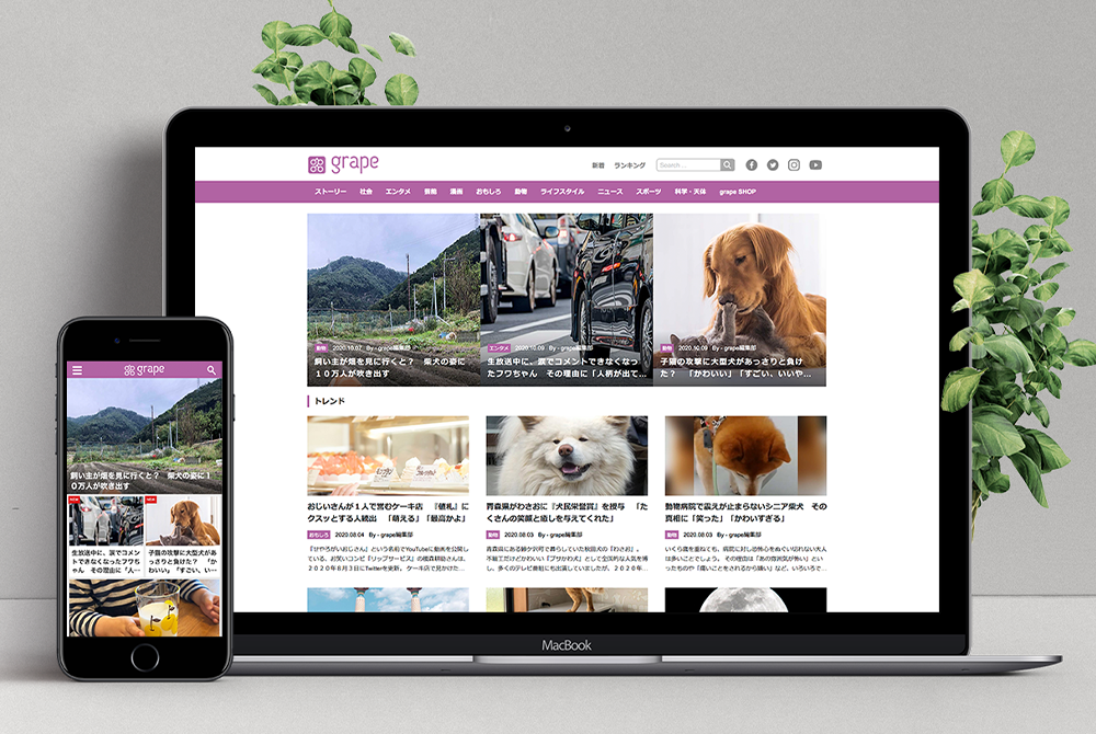 grape読者のボリュームゾーンは30〜40代の女性。動物や子育てにまつわるエピソードや、食品関連のライフハックや豆知識など、日々の暮らしに役立つ情報に関する記事への反応が高く人気を集めている。