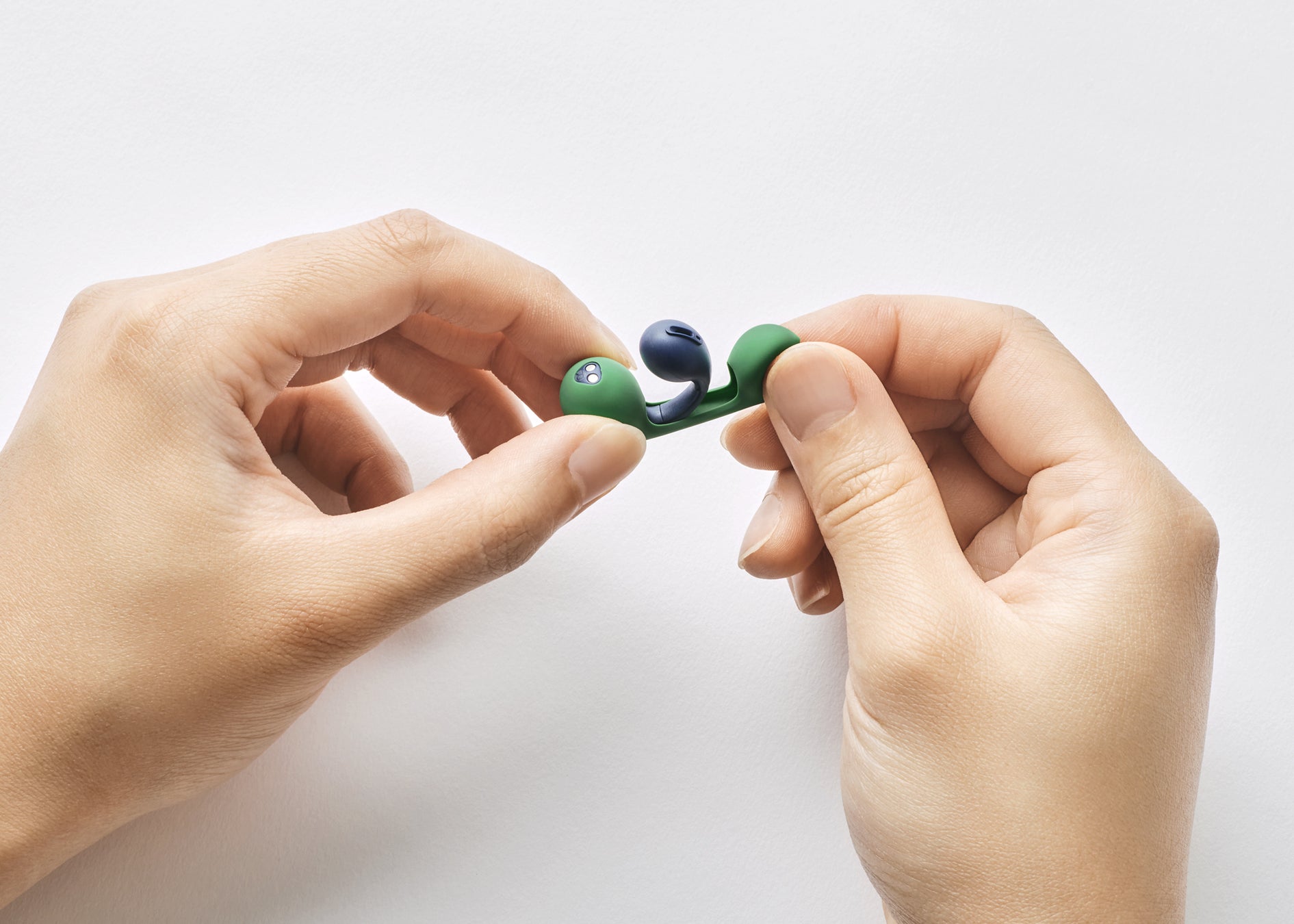 ambieをオーディオ製品ではなく、アクセサリーとして、BGMを身に着けるようにファッション感覚で楽しんで欲しいという想いで開発を続けているambie。前機種AM-TW01からイヤカフ型のデザインはそのままに、装着感と機能をアップデートしたAM-TW02。ご好評いただいている着せ替えカバーsocksはAM-TW01と共通で使用することが可能です。