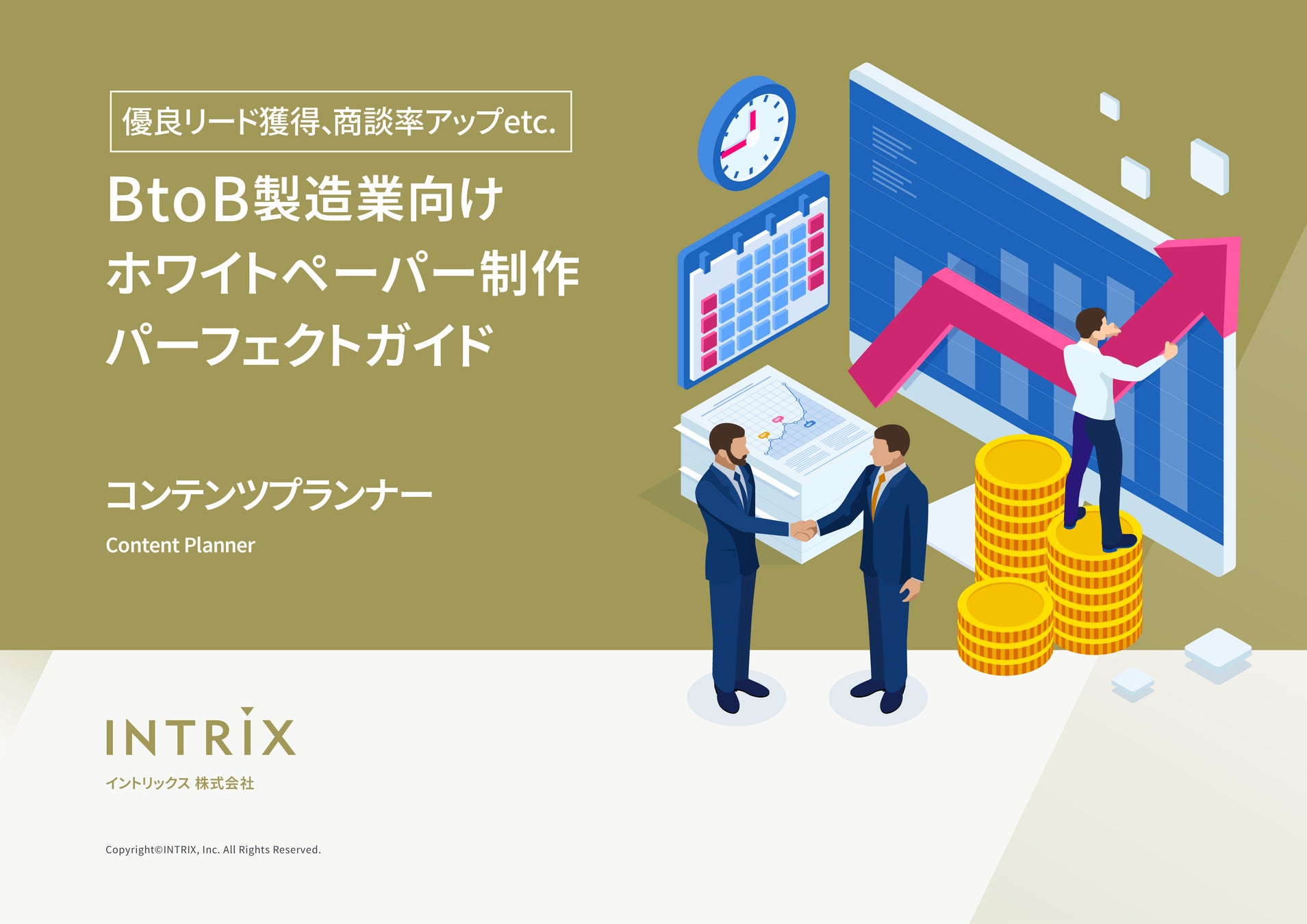 BtoB製造業のデジタルコミュニケーションを支援する、イントリックス株式会社(本社:東京都品川区、代表取締役社長:氣賀 崇)は、優良リードの獲得や商談率のアップにつながる、ホワイトペーパー制作の極意を1冊にまとめた資料「【BtoB製造業向け】ホワイトペーパー制作パーフェクトガイド」を無料公開いたしました。(https://www.intrix.co.jp/btob-marketing-columns/downloads/wp-perfect-guide/)
