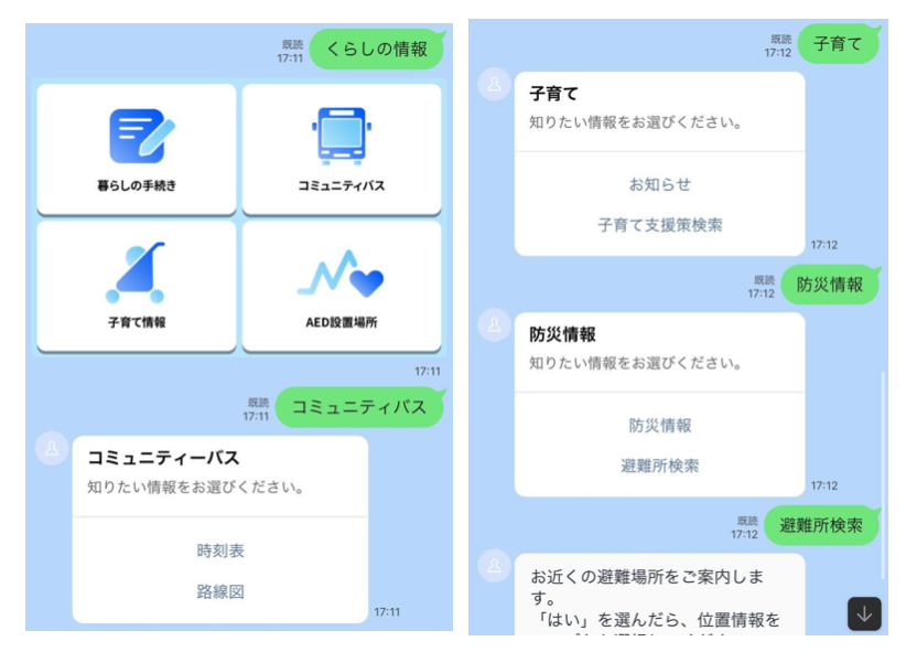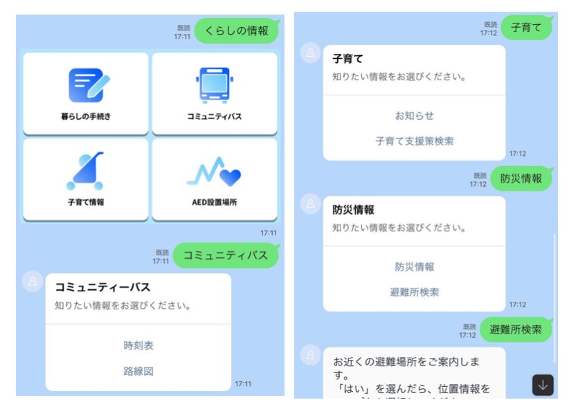 また「ごみの出し方」や「子育て情報」、「ごみのリマンド配信」など住民が必要とする情報をチャットボットで受け取れるなど、LINEを通じた住民の暮らしに役立つサービスの拡充に取り組んでいます。
