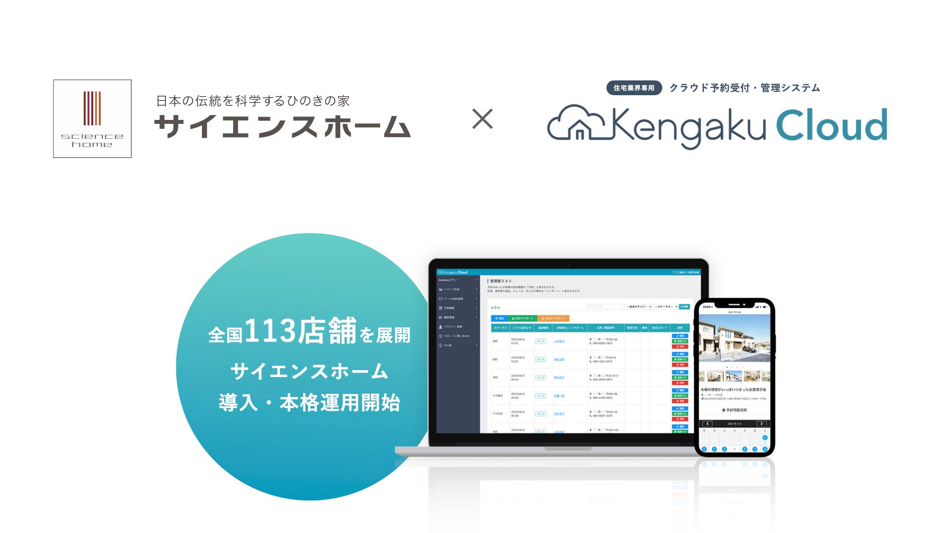 全国113店舗を展開するサイエンスホームでの導入を開始|住宅業界専⽤のクラウド予約受付・管理システムKengakuCloud(ケンガククラウド)