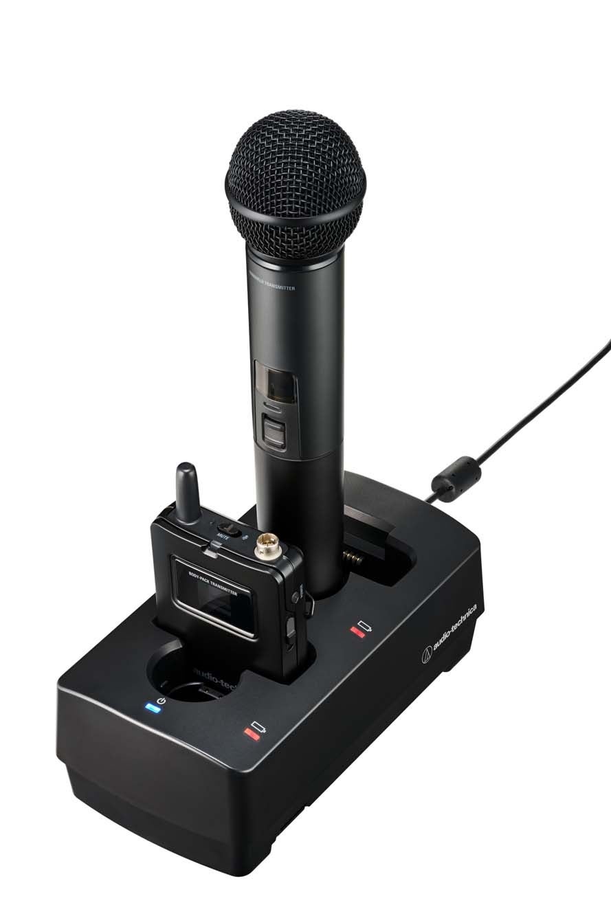 さらに、ボディパックトランスミッター『ATW-T1401』とハンドヘルドトランスミッター『ATW-T1402』は、2ch充電器『ATW-CHG3a/A』 『ATW-CHG3Na/A』(別売)で充電することができ、『ATW-T1401』は最大約15時間、『ATW-T1402』は最大約18時間の運用ができます。