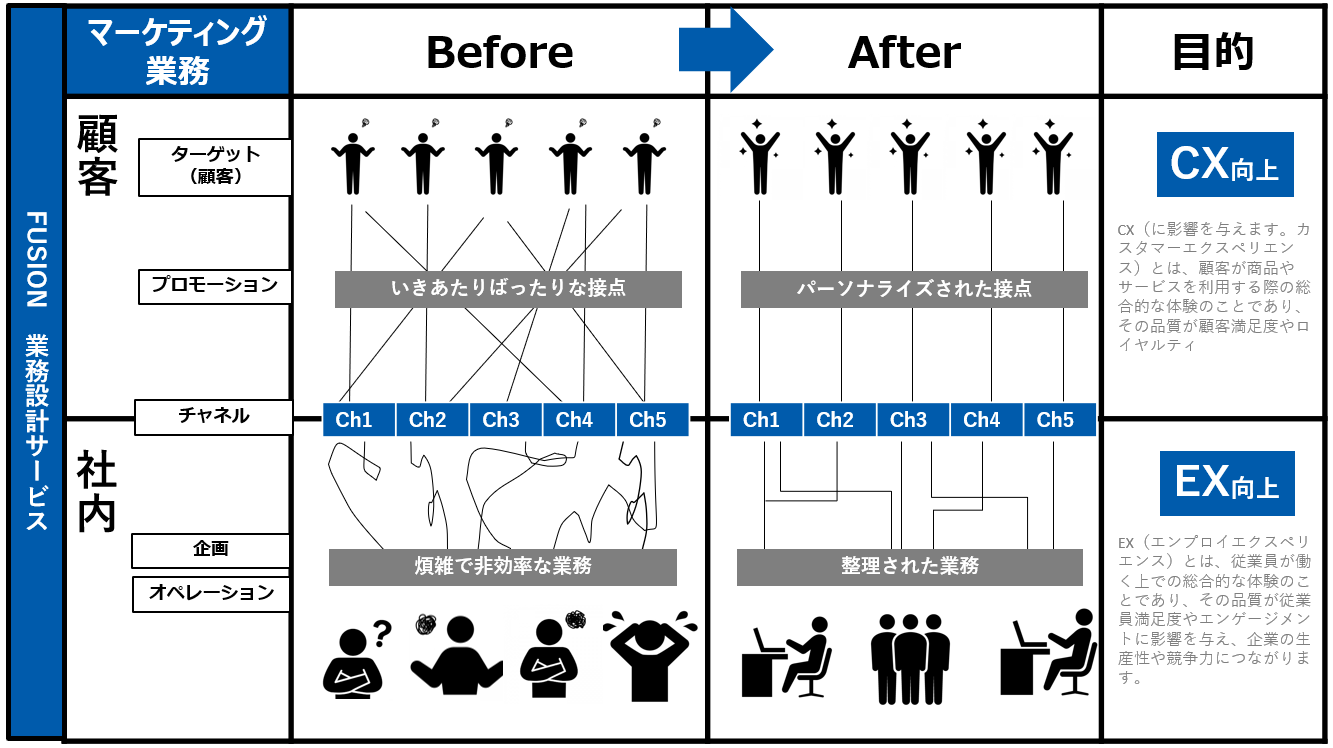 ▼マーケティング業務の整理・可視化により、CX・EX向上を実現