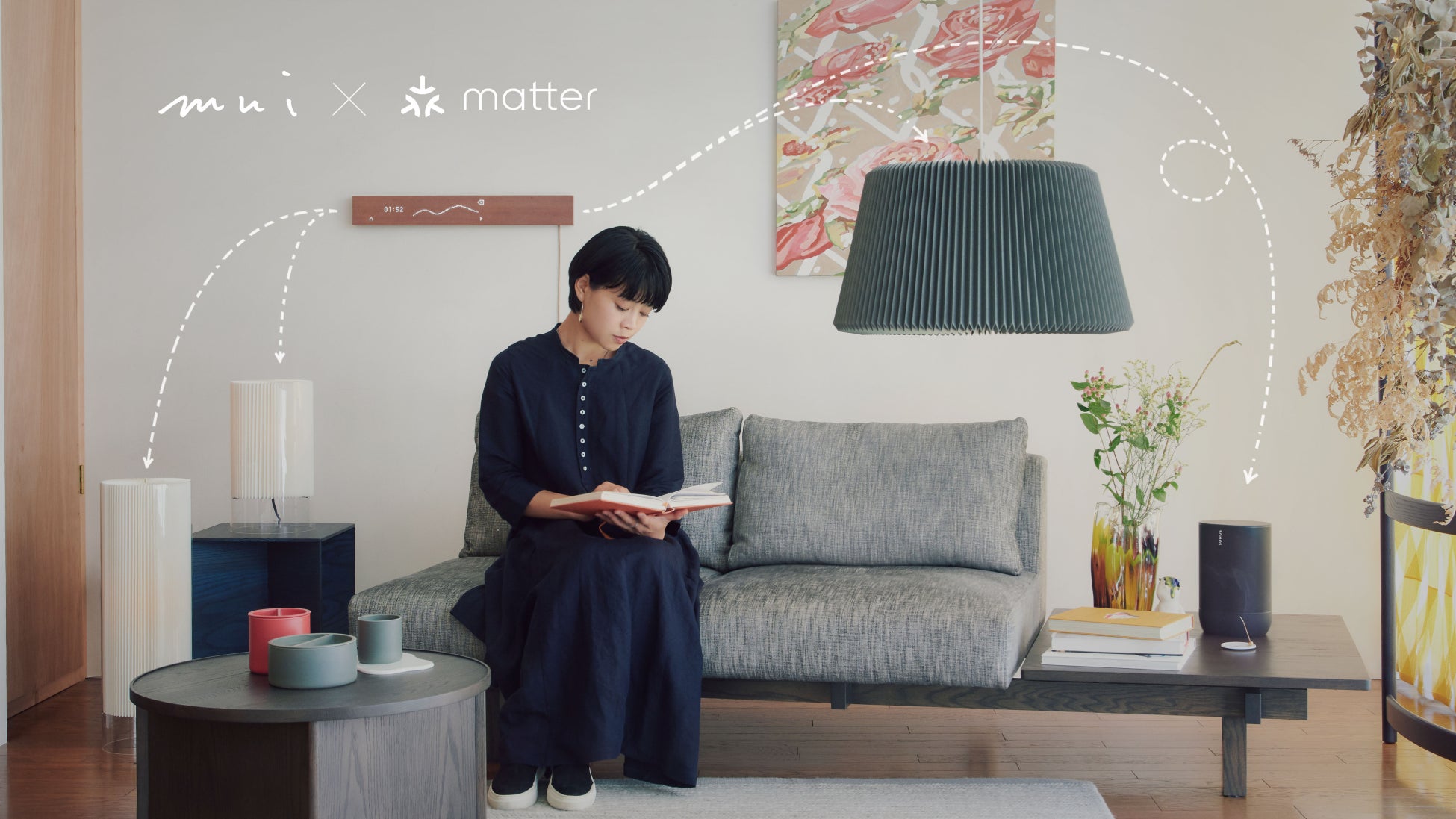 - mui Labが提供するスマートホームデバイスは、家具のような木製の外観によって、生活環境に溶け込みます。また、穏やかなUI/UXによって、ユーザーの注意を奪わず、日々の行動や大切な時間に集中することができます。