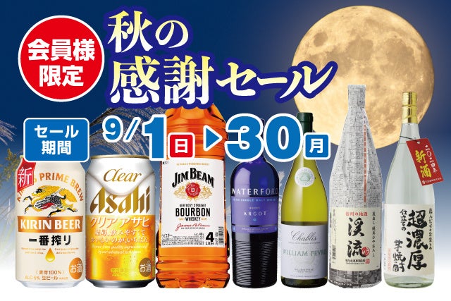 今がチャンス!9月1日(日)からリカーマウンテン各店では「会員様限定 秋の感謝セール」を開催します