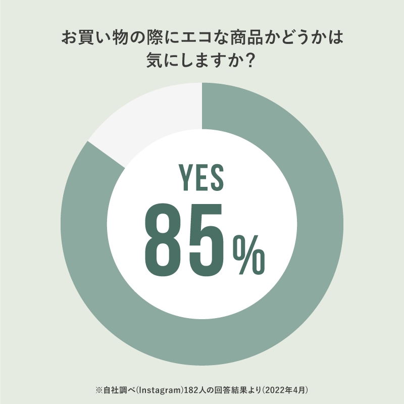 また、2020年7月からはじまったプラスチック袋の有料化や今年の4月1日から施行されたプラスチック資源循環促進法をきっかけに、世の中のユーザーが商品を選ぶときの意識もよりエコな方向に変わってきていると感じています。実際にNagiユーザーの女性たちに対し行ったアンケートでは、「お買い物の際にエコな商品かどうかは気にしますか?」という質問に85%のユーザーがYESと回答。
