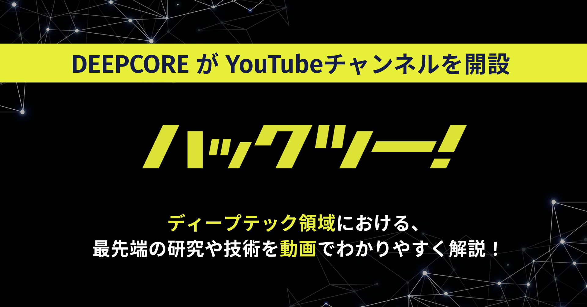 株式会社ディープコア(以下「DEEPCORE」)は、YouTubeチャンネル「ハックツー!」をこのたび開設しました。