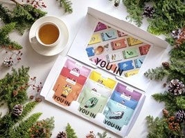 ◇内容:IKI-YO-YO!(チャイ × シナモン)/ WORK WORK(スペアミント × オレンジフラワー)/ OFF SNS(ほうじ茶 × ジンジャー)/SLOW NIGHT(カモミール × アップル)/ IPPUKU(煎茶 × アールグレイ)/ WAKI-AI-AI(ジャスミン × GABA)/ COOL DOWN(レモングラス × ジュニパー)/ SKIP DESSERT(紅茶 × カカオ)/ LOVE YOUR BODY(ルイボス × ローズヒップ)/ コースター / バレンタインデザインカード