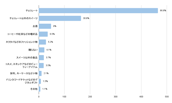 ■チョコレート購入は根強い人気。一方で他スイーツやお酒、紅茶などの嗜好品ギフトにも注目(図③)