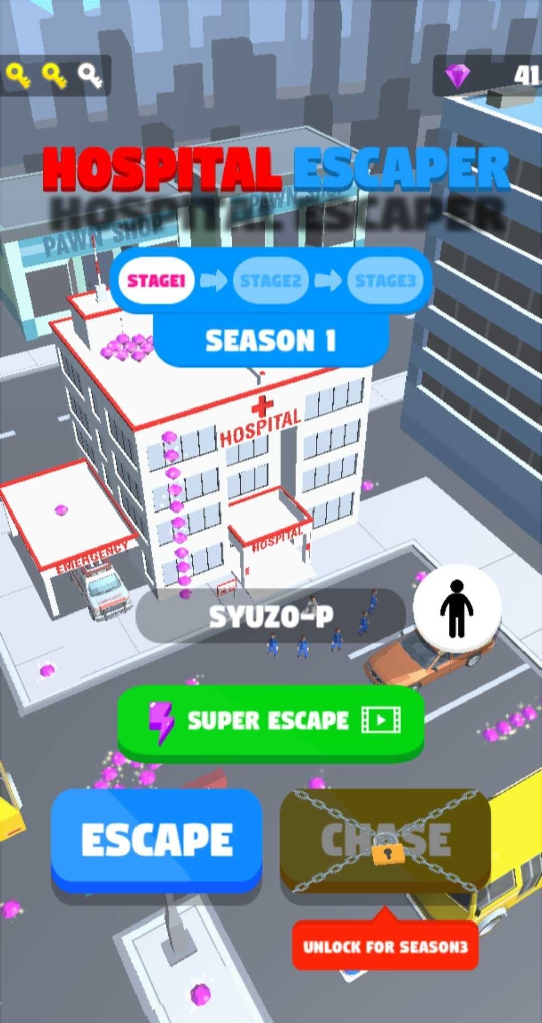 「Hospital Escaper」は、注射嫌いな主人公キャラクターを操作してパルクールを駆使しながら、医者から逃げる鬼ごっこアクションゲームです。ステージ上に配置された様々な建物やギミックを使いながら、制限時間まで医者から逃げ続けることが目的のゲームとなっています。