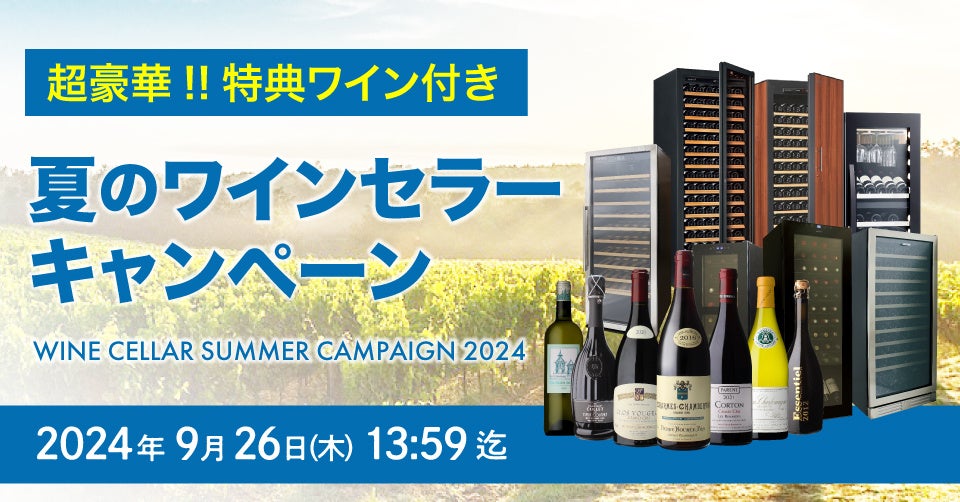 WINE&WINECELLAR セラー専科 (運営:株式会社イズミセ)は、2024年9月26日(木)13:59まで「夏のワインセラーキャンペーン」を開催中です。夏の暑さからワインを守るお気に入りのワインセラーを是非この機会に見つけてください。