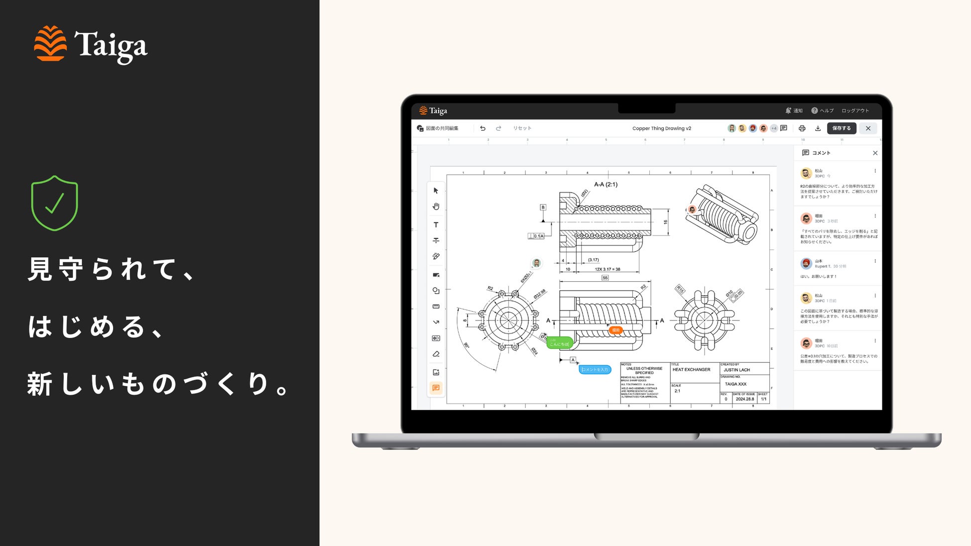 高度なセキュリティ対策で、新規部品開発・複雑形状部品の製造を「Taiga」で始めよう