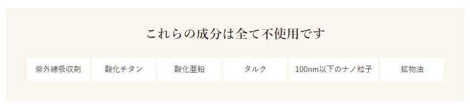 肌への影響を考えて紫外線吸収剤や酸化チタン、酸化亜鉛、100nm以下のナノ粒子は不使用で、さらにミネラルは肌に直接触れないようにアルギン酸やキサンタンガムでナチュラルコーティングして細部までやさしい使い心地にこだわりました。