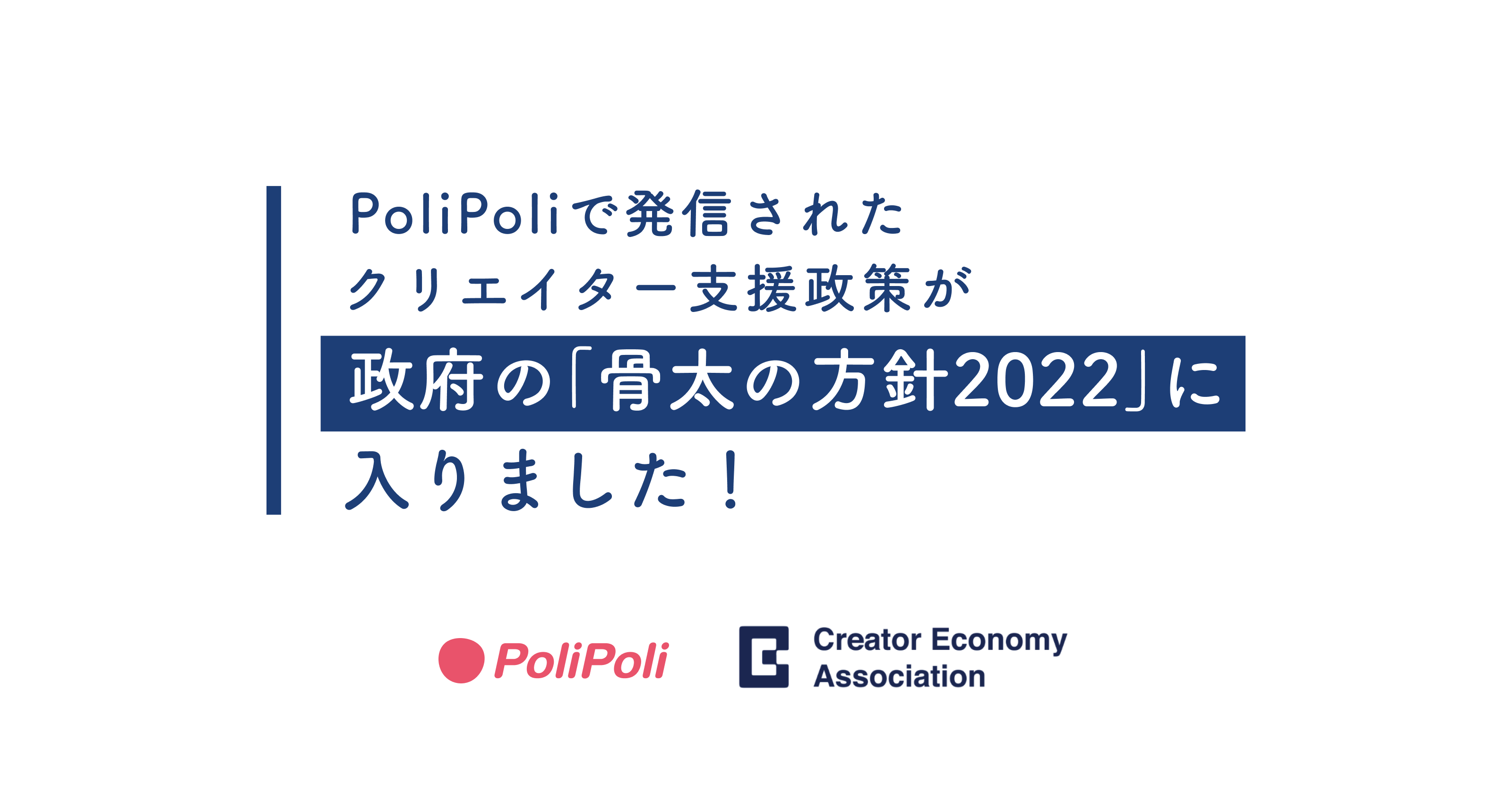 政策共創プラットフォーム『PoliPoli』に投稿されたクリエイターの創作支援に関しての政策リクエストが、政府の「骨太の方針2022」に反映されました。