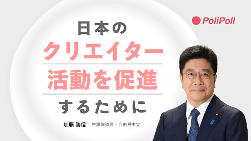 PoliPoliをサービスとして利用している加藤勝信衆議院議員が、この政策リクエストを受けて政策化し、スライドを掲載しました。また、PoliPoliとしてもクリエイターエコノミー協会との勉強会や意見交換会を開催するなど、政策実現に向けてサポートをしてまいりました。
