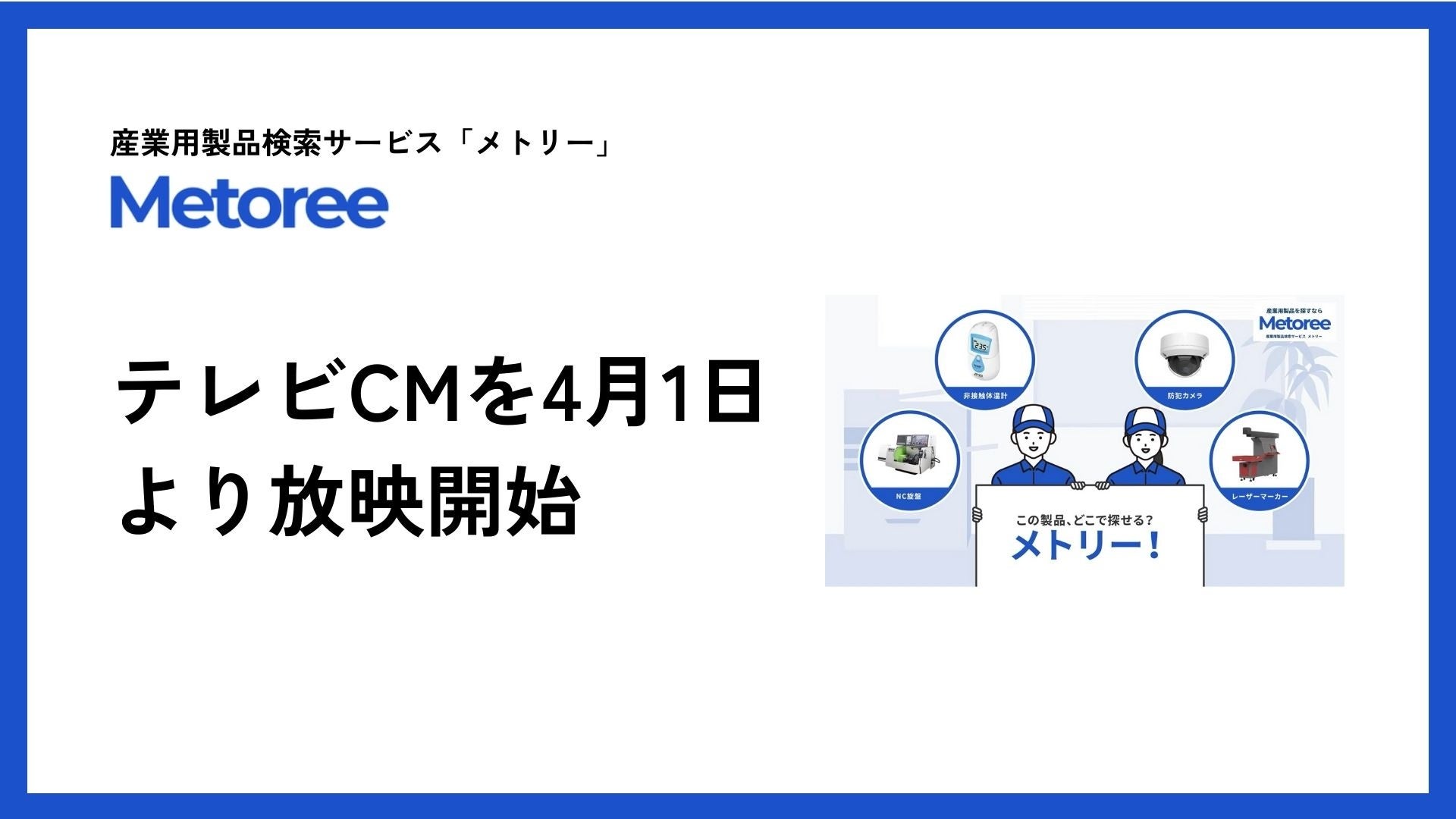 ZAZA株式会社(代表取締役:永津 豪、所在地:愛知県名古屋市)が運営する産業用製品検索サービス「Metoree(メトリー)」(https://metoree.com/)は、サービスのさらなる認知拡大を目的に、2025年4月1日よりテレビCMの放映を開始します。
