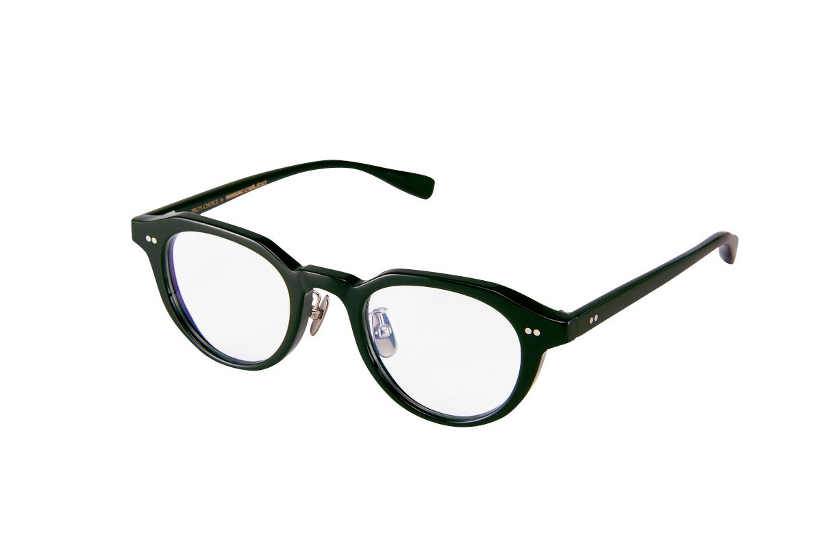 上ラインのエッジが洗練された印象を引き立てる、柔らかさとシャープさを兼ね備えたクラウンパント型。ほどよくトレンドを取り入れ、オンでもオフでもシーンを選ばずかけられます。ほぼ黒に見えるブラックグリーンは光の加減でモスグリーンに見えるこだわりのカラー。